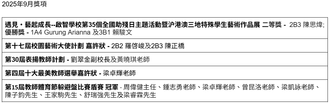 2025年9月獎項